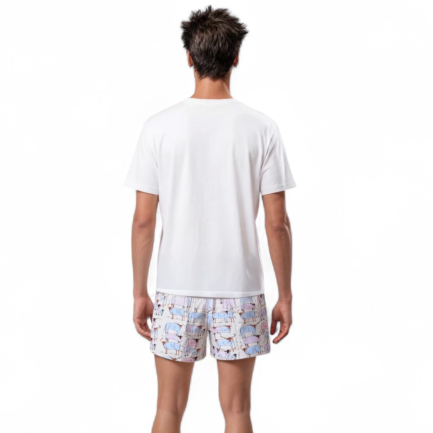 Our men’s range is a comfortable, flexible fit and all pants and shorts come with an elasticized waist and side pockets. All boxer shorts are made the traditional way with a panel seat for extra comfort.