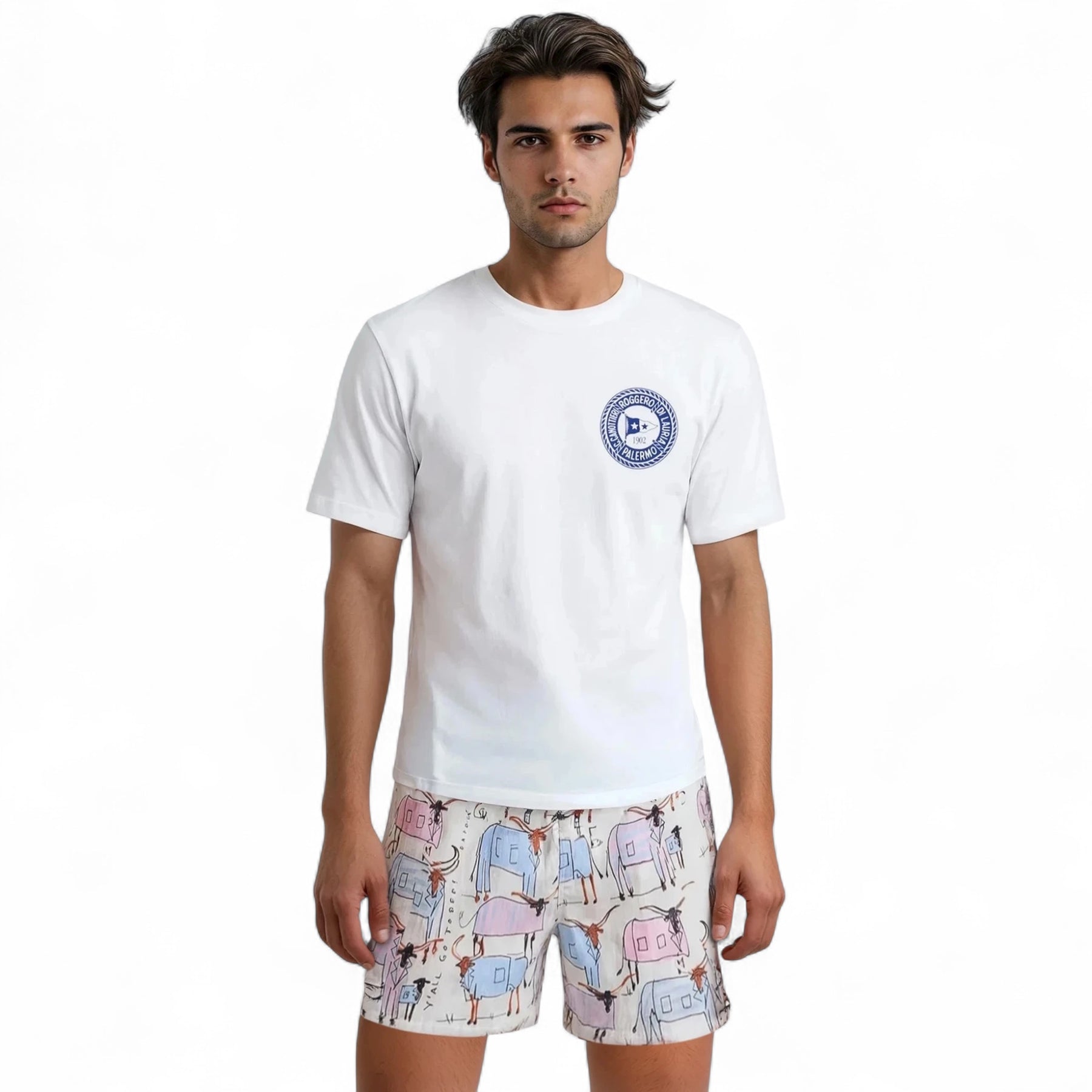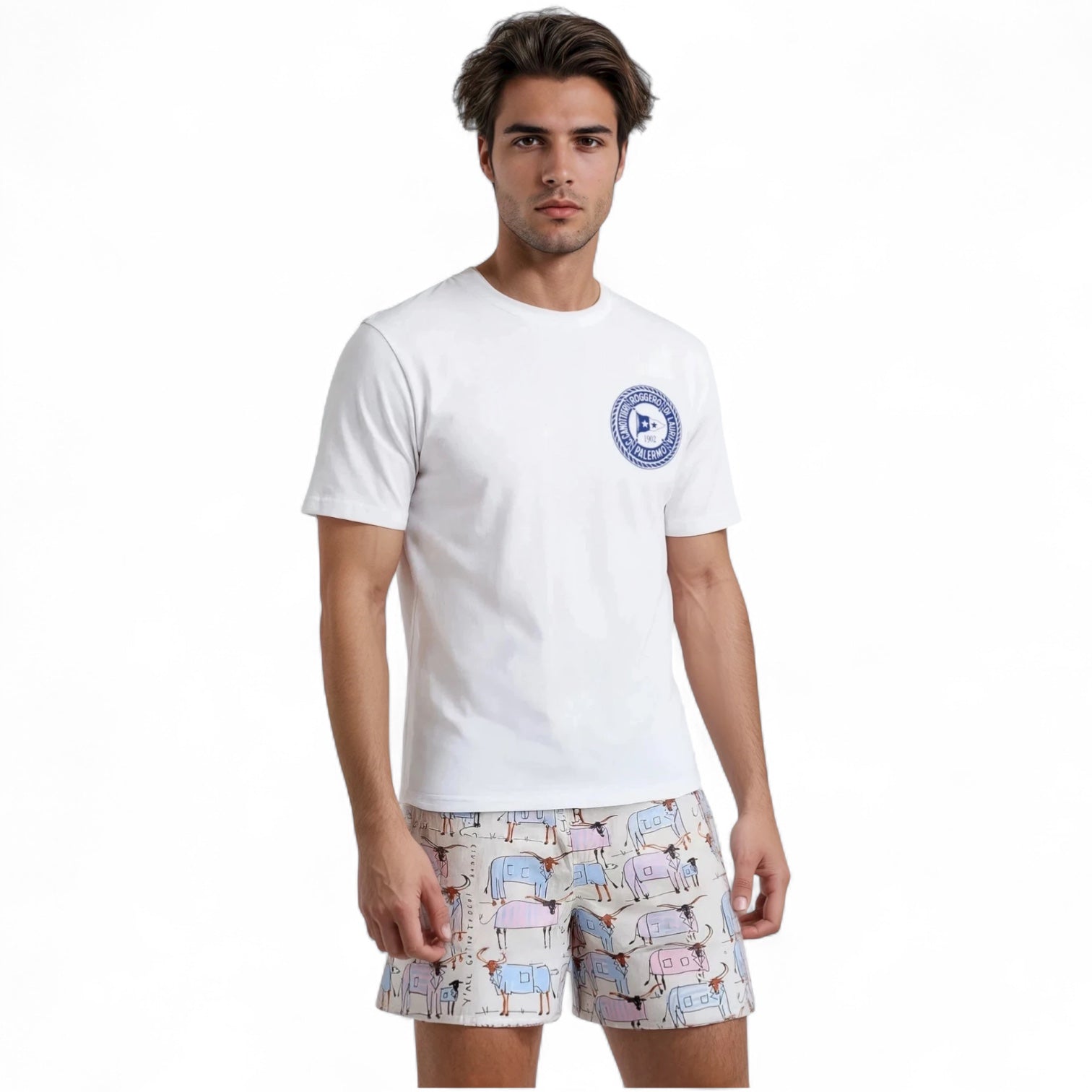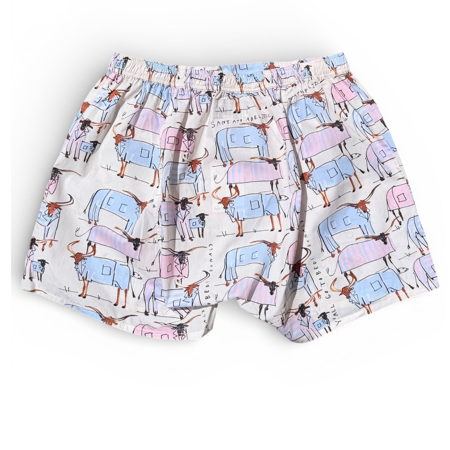 A wink to Drawbertson’s Texas roots, this print brings his iconic Longhorn cows to bedtime — dressed head to hoof in striped pajamas and stamped with his signature phrase, “Y’all go to bed.” It’s bold, humorous, and designed for the whole family to enjoy — the ultimate conversation starter for holiday mornings and cozy nights alike.