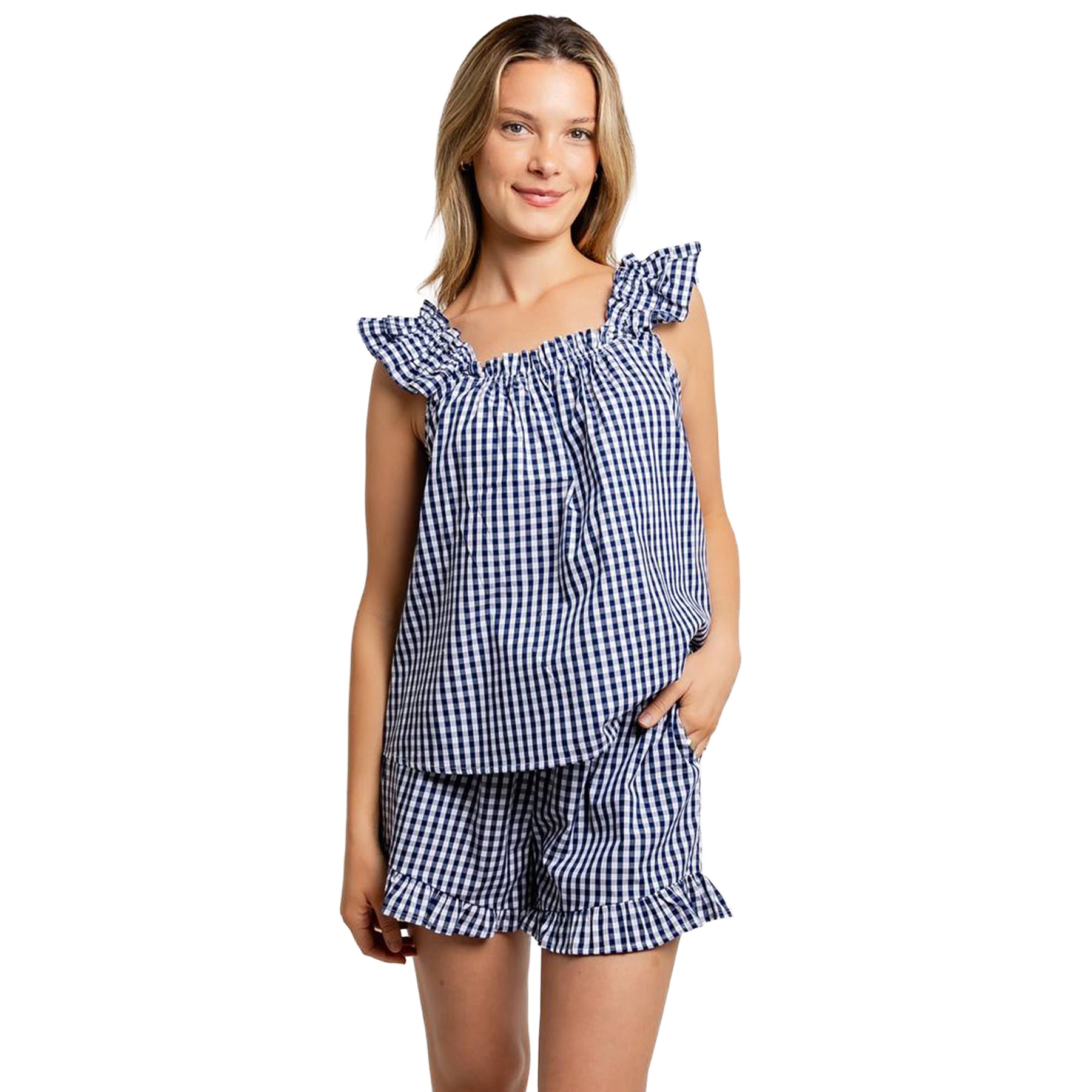 Women's Hepburn Gingham Navy Frill Tank PJ Set